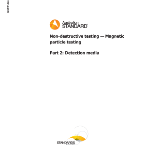 The objective of this Standard is to specify- (a) the significant properties of magnetic particle testing products (including magnetic ink, powder, carrier liquid, contrast aid paints); and (b) the methods for checking their properties.