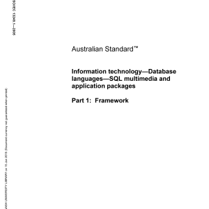 Home/AS/AS ISO/IEC 13249.1-2005 🔍Purchase the full subscription package now and enjoy a 40% discount, along with free updates for future editions. AS ISO/IEC 13249.1-2005$125.14 Information technology — Database languages — SQL multimedia and application packages, Part 1: Framework AS ISO/IEC 13249.1-2005 quantity Add to cart PDF Format Searchable Printable Preview Now Description Edition Details Additional information Preview PDF Adopts ISO/IEC 13249-1:2002 which specifies a number of packages of generic data types common to various kinds of data used in multimedia and application areas, to enable that data to be stored and manipulated in an SQL database. Content history ISO/IEC 13249-1:2002 [Superseded] ISO IEC 13249-1-2002 Please select a variation to view its description. Published 01/01/2005 Pages 16 Please select a variation to view its pdf. Related products AS/NZS 3837:1998 $125.14 Add to cart AS 3570-1998 $125.14 Add to cart AS 1603.2-1990 $70.15 Add to cart AS (E)D2522-1941 $23.02 Add to cart