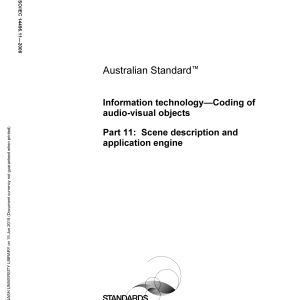 Home/AS/AS ISO/IEC 14496.11-2006 🔍Purchase the full subscription package now and enjoy a 40% discount, along with free updates for future editions. AS ISO/IEC 14496.11-2006$608.55 Information technology — Coding of audio-visual objects, Part 11: Scene description and application engine AS ISO/IEC 14496.11-2006 quantity Add to cart PDF Format Searchable Printable Preview Now Description Edition Details Additional information Preview PDF Adopts ISO/IEC 14966-11:2005 which specifies the coded representation and behaviour of the spatio-temporal positioning of audio-visual objects, the Extensible MPEG-4 Textual (XMT) format, and a system level description of an application engine. Content history ISO/IEC 14496-11:2005 [Superseded] Please select a variation to view its description. Published 13/03/2006 Pages 513 Please select a variation to view its pdf. Related products AS 1716-1991 $213.50 Add to cart AS 2205.6.1-1988 $50.39 Add to cart AS 60204.11-2006 $218.58 Add to cart AS 1602-1974 $70.15 Add to cart