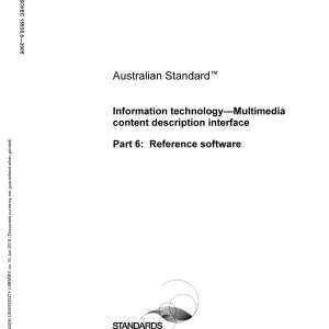 Home/AS/AS ISO/IEC 15938.6-2005 🔍Purchase the full subscription package now and enjoy a 40% discount, along with free updates for future editions. AS ISO/IEC 15938.6-2005$149.01 Information technology — Multimedia content description interface, Part 6: Reference software AS ISO/IEC 15938.6-2005 quantity Add to cart PDF Format Searchable Printable Preview Now Description Edition Details Additional information Preview PDF Specifies simulation software for tools defined in Parts 1,2,3,4 and 5 of AS(NZS) 15938. This software has been derived from the verification models used in the process of developing of the Standard. Content history ISO/IEC 15938-6:2003 [Superseded] ISO IEC 15938-6-2003 Please select a variation to view its description. Published 01/01/2005 Pages 23 Please select a variation to view its pdf. Related products AS/NZS 5263.1.7:2016 $113.69 Add to cart AS 1603.2-1990 $70.15 Add to cart AS 5250:2024 $63.00 Add to cart AS 1714-1990 $119.20 Add to cart