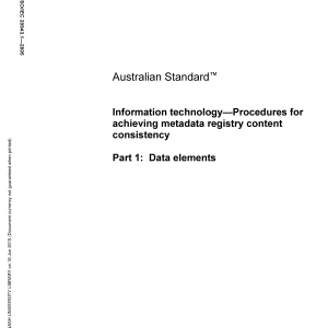 Home/AS/AS ISO/IEC 20943.1-2005 🔍Purchase the full subscription package now and enjoy a 40% discount, along with free updates for future editions. AS ISO/IEC 20943.1-2005$296.44 Information technology — Procedures for achieving metadata registry content consistency, Part 1: Data elements AS ISO/IEC 20943.1-2005 quantity Add to cart PDF Format Searchable Printable Preview Now Description Edition Details Additional information Preview PDF Adopts ISO/IEC TR 20943-1:2003 which specifies a set of procedures for the consistent registration of data elements and their attributes in a registry. Content history ISO/IEC TR 20943-1:2003 [Current] ISO IEC 20943-1-2003 Please select a variation to view its description. Published 01/01/2005 Pages 125 Please select a variation to view its pdf. Related products AS 1099.3.7-1981 $28.78 Add to cart AS 1668.1:2015 $319.69 Add to cart AS 5101.3.2-2008 $50.39 Add to cart AS 1038.10.3-1998 $47.81 Add to cart