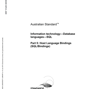 Adopts ISO/IEC 9075-5:1999 which specifies syntax for embedding SQL-statements in a compilation unit that otherwise conforms to the standard for a particular programming language (host language). Content history ISO/IEC 9075-5:1999 [Superseded] ISO/IEC 9075-5:1999/Amd 1:2001 [Superseded] ISO/IEC 9075-5:1999/Cor 2:2003 [Superseded] ISO IEC 9075-5-1999 Please select a variation to view its description. Published 01/01/2005 Pages 212 Please select a variation to view its pdf.