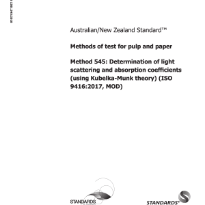 The objective of this Standard is to specify a method for the calculation of light-scattering and light-absorption coefficients based upon diffuse reflectance measurements made under the conditions specified in AS/NZS 1301.510:2016 using the Kubelka-Munk theory.