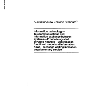 Specifies the message waiting indication features applicable to various basic services supported by private integrated services networks. The basic services are specified in AS/NZS 4135:1995. This Standard is one of a series of Standards applicable to private integrated services networking. This Standard is identical with and has been reproduced from ISO/IEC 15505:1997.