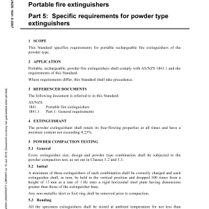 Portable fire extinguishers, Part 5: Specific requirements for powder type extinguishers
