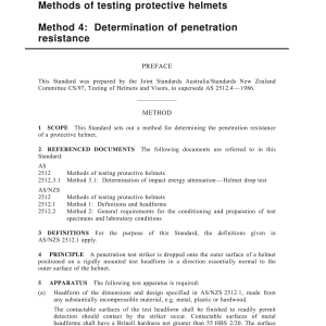 This Standard sets out a method for determining the penetration resistance of a protective helmet.