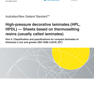AS/NZS 2924.4:2024 identically adopts ISO 4586 4:2018, which specifies performance requirements for compact laminate (defined in Clause 4) of thickness 2 mm or greater intended for interior use.
