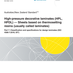 High-pressure decorative laminates (HPL, HPDL) – Sheets based on thermosetting resins (usually called laminates), Part 7: Classification and specifications for design laminates (ISO 4586-7:2018, IDT)