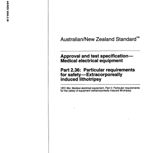 Specifies safety requirements for the design and manufacture of devices (lithotripters) intended to generate acoustic pulses from outside the human body for the purpose of fragmenting calculi (‘stones’) within the body. This Standard is to be read in conjunction with AS 3200.1.0-1990. It is identical with and reproduced from IEC 60601-2-36:1997.