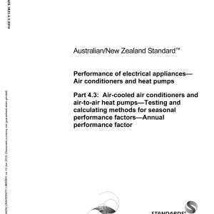 Performance of electrical appliances – Air conditioners and heat pumps, Part 4.3: Air-cooled air conditioners and air-to-air heat pumps – Testing and calculating methods for seasonal performance factors – Annual performance factor (ISO 16358-3:2013 (MOD))