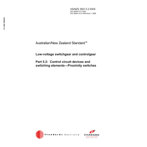 Applies to inductive and capacitive proximity switches that sense the presence of metallic and/or non-metallic objects, ultrasonic proximity switches that sense the presence of sound reflecting objects, photoelectric proximity switches that sense the presence of objects and non-mechanical magnetic proximity switches that sense the presence of objects in a magnetic field. This Standard is identical with and reproduced from IEC 60947-5-2:1997/Amd 1:1999.