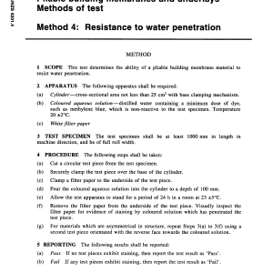 This Standard determines the ability of a pliable building membrane material to resist water penetration.