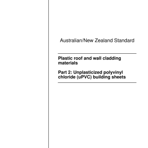 Specifies requirements for transparent, translucent and opaque, uncoated and coated uPVC sheets that are formed into profiles and are primarily intended for use as a roof cladding sheet. In certain circumstances, the same material may be used as a wall cladding sheet.