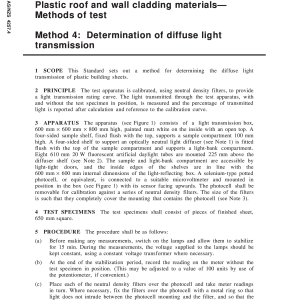 Plastic roof and wall cladding materials — Methods of test, Method 4: Determination of diffuse light transmission