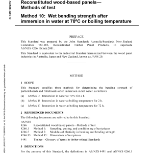 This Standard specifies three methods for determining the bending strength of particleboards and fibreboards after immersion in hot water.