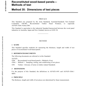 Reconstituted wood-based panels — Methods of test, Method 35: Dimensions of test pieces