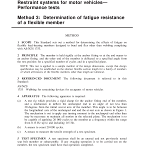 Restraint systems for motor vehicles – Performance tests, Method 3: Determination of fatigue resistance of a flexible member