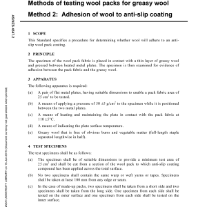 This Standard specifies a procedure for determining whether wool will adhere to an anti-slip wool pack coating.