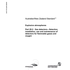 Adopts IEC 60079-29-2, Ed.2.0 (2015) to provide guidance on, and recommended practice for, the selection, installation, safe use and maintenance of electrically operated group II equipment intended for use in industrial and commercial safety applications, and group I equipment in underground coal mines for the detection and measurement of flammable gases complying with the requirements of AS/NZS 60079.29.1 or AS/NZS 60079.29.4.