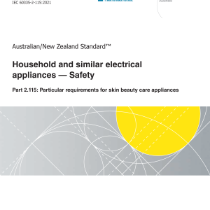 AS/NZS 60335.2.115:2021 deals with the safety of electric appliances for skin beauty care of persons and intended for household, commercial and similar purposes, their rated voltage being not more than 250 V. Appliances covered by this standard can incorporate vapour-producing devices or spray-producing devices.