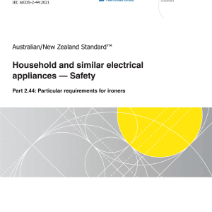 AS/NZS 60335.2.44:2022 deals with the safety of electric ironers for both commercial and household and similar purposes, their rated voltage being not more than 250 V for single-phase appliances and 480 V for other appliances. Appliances not intended for normal household, but which nevertheless can be a source of danger to the public, such as appliances intended to be used by laymen in shops, in light industry and on farms, are within the scope of this standard. Examples of appliances within the scope of this standard are ironing presses for one-person operation; mangles; rotary ironers for one-person operation and trouser presses. This Standard will supersede AS/NZS 60335.2.44:2012 three years from the date of publication (i.e. on 25 November 2025). During this period AS/NZS 60335.2.44:2012 will also remain current. Regulatory authorities that reference this Standard in regulation may apply these requirements at a different time. Users of this Standard should consult with these authorities to confirm their requirements.