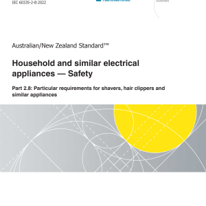 AS/NZS 60335.2.8:2023 deals with the safety of electric shavers, hair clippers, epilators, appliances used for manicure and pedicure and similar appliances intended for household and similar purposes, their rated voltage being not more than 250 V, including direct current (DC) supplied appliances and battery-operated appliances. This Standard will supersede AS/NZS 60335.2.8:2013 three years from the date of publication (i.e. on 1 December 2026). During this period AS/NZS 60335.2.8:2013 will also remain current. Regulatory authorities that reference this Standard in regulation may apply these requirements at a different time. Users of this Standard should consult with these authorities to confirm their requirements.