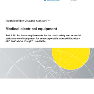 AS/NZS 60601.2.36:2022 adopts and modifies IEC 60601 2 36:2014, which specifies requirements for the basic safety and essential performance of equipment for extracorporeally induced lithotripsy, including equipment for other medical applications of therapeutic extracorporeally induced focused pressure pulses (ME equipment).