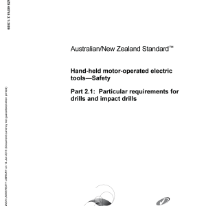This Standard applies to drills and impact drills. It will supersede AS/NZS 60745.2.1:2003, Hand-held motor-operated electric tools – Safety – Part 2.1: Particular requirements for drills and impact drills, two years from publication. During this period it is anticipated that regulatory authorities will approve drills and impact drills to either standard.