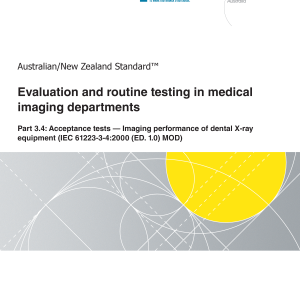 AS/NZS 61223.3.4:2022 adopts and modifies IEC 61223-3-4:2000 (ED. 1.0), which defines parameters and methods of test for the performance of dental X-ray equipment that use radiographic imaging systems that influence the image quality and patient dose.