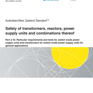 AS/NZS 61558.2.16:2022 deals with the safety of switch mode power supply units and transformers for switch mode power supply units. This Standard will supersede AS/NZS 61558.2.16:2010 three years from the date of publication (i.e. on 24 June 2025). During this period AS/NZS 61558.2.16:2010 will also remain current. Regulatory authorities that reference this Standard in regulation may apply these requirements at a different time. Users of this Standard should consult with these authorities to confirm their requirements.