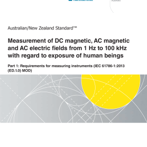 This document adopts IEC 61786-1:2013 with modifications for Australia and New Zealand, which provides guidance for measuring instruments used to measure the field strength of quasi-static magnetic and electric fields that have a frequency content in the range 1 Hz to 100 kHz and with DC magnetic fields to evaluate the exposure levels of the human body to these fields. KEYWORDS: Measuring instruments; Exposure levels; Human body; Quasi-static magnetic fields; Electric fields