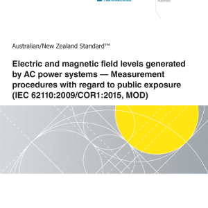 Adopts and modifies IEC 62110:2009/COR1:2015 with modifications for Australia and New Zealand, which establishes measurement procedures for electric and magnetic field levels generated by AC power systems to evaluate the exposure levels of the human body to these fields. KEYWORDS: Electric and magnetic fields; Measurement procedures; AC power systems; Exposure levels; Human body