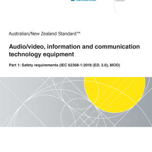 AS/NZS 62368.1:2022 adopts IEC 62368‐1:2018 (ED 3.0) with modifications for Australia and New Zealand, which applies to the safety of electrical and electronic equipment within the field of audio, video, information and communication technology, and business and office machines with a rated voltage not exceeding 600 V. This document does not include requirements for performance or functional characteristics of equipment.