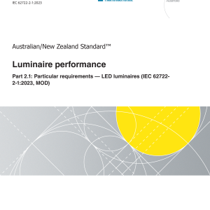 AS/NZS 62722.2.1:2024 identically adopts IEC 62722 2 1:2023, which specifies the performance requirements for LED luminaires, together with the test methods and conditions Content history IEC 62722-2-1:2023 [Current] DR AS/NZS 62722.2.1:2024 Please select a variation to view its description. Published 16/02/2024 Pages 22 Please select a variation to view its pdf.