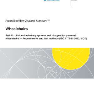 AS/NZS 7176.31:2024 adopts and modifies ISO 7176 31:2023, which specifies requirements and test methods for lithium-ion batteries and battery systems intended for use in electrically powered wheelchairs, and their charging systems