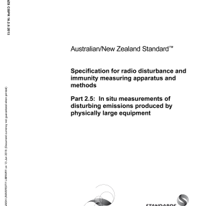 Adopts CISPR/TR 16-2-5, Ed.1 (2008), which provides a guide for in situ measurements of disturbing emissions by large equipment not covered by existing emission standards, e.g. AS/NZS CISPR 11 and AS/NZS CISPR 22.