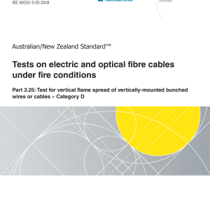 AS/NZS IEC 60332.3.25:2021 identically adopts IEC 60332-3-25:2018, which covers category D for methods of test for the assessment of vertical flame spread of vertically-mounted bunched wires or cables, under defined conditions.