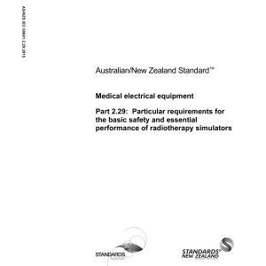 Adopts IEC60601-2-29,Ed.3.0(2008) to specify particular basic safety and essential performance requirements for radiotherapy simulators. To be read in conjunction with AS/NZSIEC60601.1:2015. Content history IEC 60601-2-29:2008 [Current] AS/NZS 3200.2.29:2000 [Superseded] DR AS/NZS IEC 60601.2.29:2015 IEC 60601-2-29 Ed.3.0 (2008) Please select a variation to view its description. Published 18/12/2015 Pages 19 Please select a variation to view its pdf.