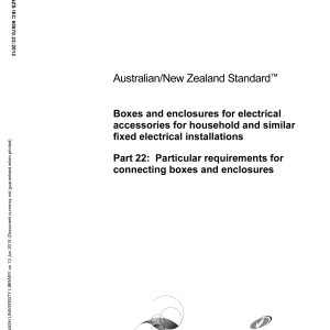 The objective of this Standard is to provide the Australian and New Zealand electrical industry, including manufacturers, regulators, test laboratories and certification bodies, with requirements for boxes and enclosures for electrical accessories for household and similar fixed electrical installations, with particular application to connecting boxes for junction(s) and/or tappings.