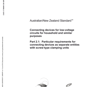 Adopts IEC 60998-2-1:2002 to specify requirements for connecting devices with screw-type clamping units primarily suitable for connecting unprepared conductors. This Part 2.1 is intended to be used in conjunction with IEC 60998-1 (AS/NZS IEC 60998.1).