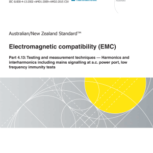 AS/NZS 61000.4.13:2023 identically adopts IEC 61000 4 13:2002+AMD1:2009+AMD2:2015 CSV which defines the immunity test methods and range of recommended basic test levels for electrical and electronic equipment with rated current up to 16 A per phase at disturbance frequencies up to and including 2 kHz (for 50 Hz mains) and 2,4 kHz (for 60 Hz mains) for harmonics and interharmonics on low voltage power networks.