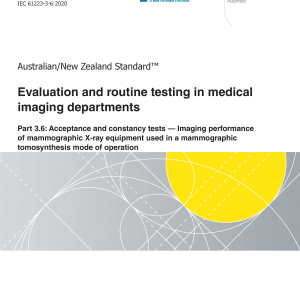 AS/NZS IEC 61223.3.6:2022 identically adopts IEC 61223 3 6:2020, which specifies requirements for the performance of mammographic X-Ray equipment when used in mammographic tomosynthesis modes of operation, with respect to image quality and dose.