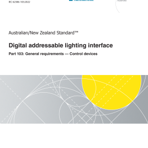 AS/NZS IEC 62386.103:2024 identically adopts IEC 62386 103:2022, which specifies control devices for control by digital signals of electronic lighting equipment Content history IEC 62386-103:2022 [Current] AS/NZS 62386.103:2020 [Superseded] DR AS/NZS IEC 62386.103:2024 Please select a variation to view its description. Published 15/03/2024 Pages 57 Please select a variation to view its pdf.
