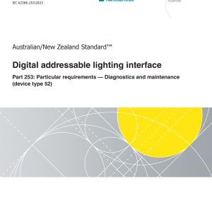Home/AS/AS/NZS IEC 62386.253:2024 🔍Purchase the full subscription package now and enjoy a 40% discount, along with free updates for future editions. AS/NZS IEC 62386.253:2024$152.56 Digital addressable lighting interface, Part 253: Particular requirements – Diagnostics and maintenance (device type 52) AS/NZS IEC 62386.253:2024 quantity Add to cart PDF Format Searchable Printable Preview Now Description Edition Details Additional information Preview PDF AS/NZS IEC 62386.253:2024 identically adopts IEC 62386 253:2023, which specifies the information related to diagnostics and maintenance information accessible through memory banks Content history IEC 62386-253:2023 [Current] DR AS/NZS IEC 62386.253:2024 Please select a variation to view its description. Published 23/02/2024 Pages 18 Please select a variation to view its pdf. Related products AS 2205.6.1-1988 $50.39 Add to cart AS/NZS ISO 11334.1:2014 $125.14 Add to cart AS 1189.7-1982 $100.10 Add to cart AS (E)D641-1941 $87.96 Add to cart