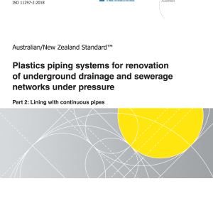 AS/NZS ISO 11297.2:2023 identically adopts ISO 11297 2:2018, which specifies the requirements and test methods for pipes and fittings which are part of plastics piping systems installed as continuous pipes in the renovation of underground drainage and sewerage networks under pressure. Applicable to polyethylene (PE) pipes of three different types, PE solid wall single layered pipes, PE pipes with co-extruded layers and PE coated pipes with a peelable, contiguous, thermoplastics additional layer
