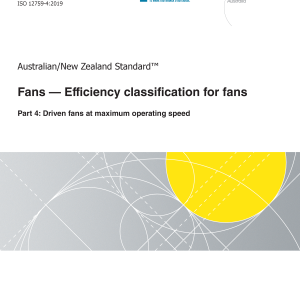 AS/NZS ISO 12759.4:2023 identically adopts ISO 12759 4:2019, which establishes a system for the classification of fan efficiency for all fan types driven by motors of nominal rating 0.125 kW and above. It applies to driven fans only, but not to the system in which they might be installed. This document describes a number of different procedures to classify the efficiency of a fan or to apply a minimum efficiency limit (MEL)