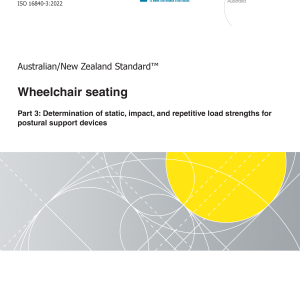 AS/NZS ISO 16840.3:2024 identically adopts ISO 16840 3:2022, which specifies requirements for static, impact, and repetitive load strengths for postural support devices (PSDs) with associated attachment hardware intended for use with an undefined wheelchair seating system. Specifies the test methods for determining whether the minimum performance requirements have been met to release a product into use. Also specifies requirements for disclosure of the test results