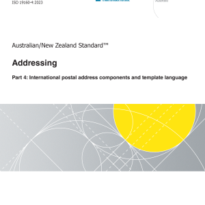 AS/NZS ISO 19160.4:2023 identically adopts ISO 19160 4:2023 which defines key terms for postal addressing, postal address components and constraints on their use. Also specifies a mechanism for the creation of sub-elements, which correspond to either sub-divisions of element content, such as door type or door indicator or to multiple occurrences and locations of elements in an address, such as levels of administrative regions.