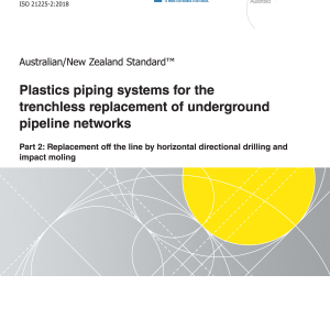 AS/NZS ISO 21225.2:2023 identically adopts ISO 21225 2:2018, which specifies requirements and test methods for pipes and fittings which are part of plastics piping systems for the trenchless replacement of various underground pipeline networks, underground non-pressure and pressure drainage and sewerage networks and underground water and gas supply networks, by means of horizontal directional drilling and impact moling.