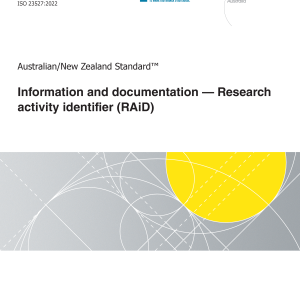 AS/NZS ISO 23527:2023 identically adopts ISO 23527:2022 which defines the use and structure of the Research Activity Identifier (RAiD) system. The RAiD system includes a registry which supports the identification of research projects, i.e. projects managed in a scholarly or industrial environment which are expected to lead to specified outputs